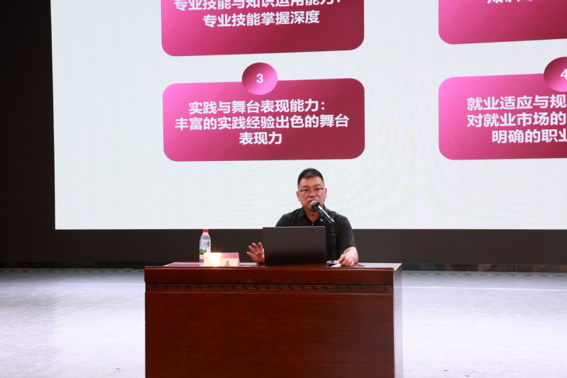 在互动环节,李鑫引导学生分享职业规划设想,并逐一点评与鼓励。他强调,职业生涯规划是动态调整的过程,需通过明确目标、积极实践与及时反馈持续优化,助力艺术人才实现长远发展。