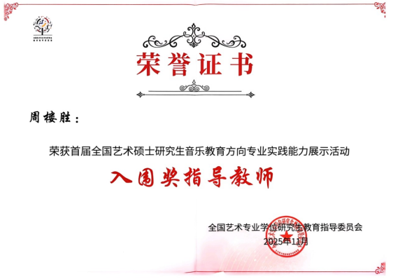 自活动启动以来,学院高度重视,积极组织选拔与系统培训。在学院导师团队的全程指导下,两位参赛学生围绕教学设计、课堂实施、合唱指挥等关键能力展开强化训练,并深入中小学课堂进行实战演练,持续提升了教学素养与实践能力。在仅设两级奖项的高规格全国赛事中荣获入围奖,充分体现了学院“以赛促学、以赛促教”机制的扎实成效,展现了学院在艺术硕士培养方面的扎实基础与育人实效。