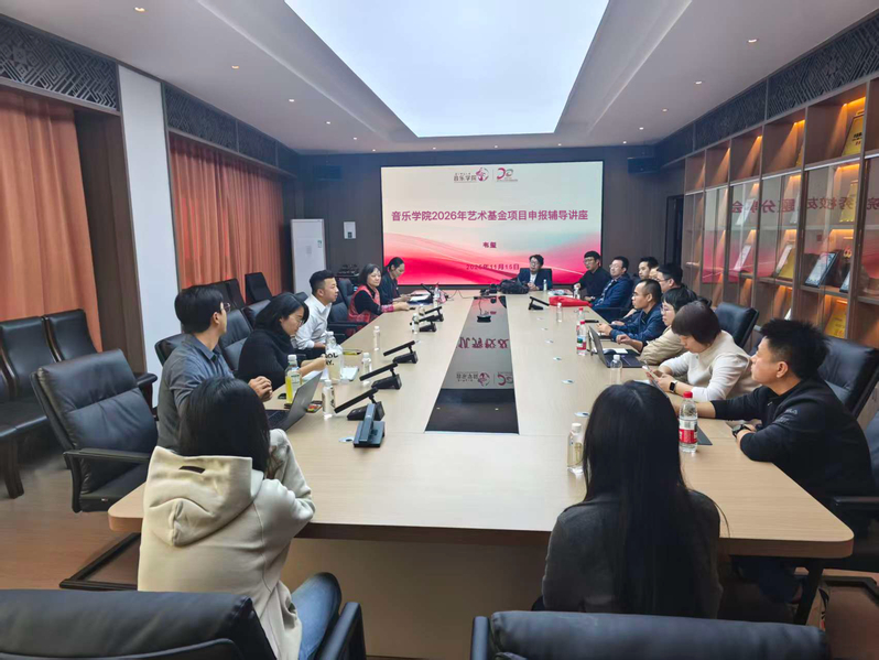 为提升学院教师艺术基金项目申报质量,做好2026年度国家艺术基金与广西艺术基金申报组织工作,近日,音乐学院组织召开2026年艺术基金项目申报专题辅导讲座。会议邀请音乐学院优秀院友、广西民族文化艺术研究院民族艺术研究部主任、国家艺术基金广西项目管理办公室副主任韦玺担任主讲人。会议由学院行政主要负责人主持,学院青年教师代表20余人参加。