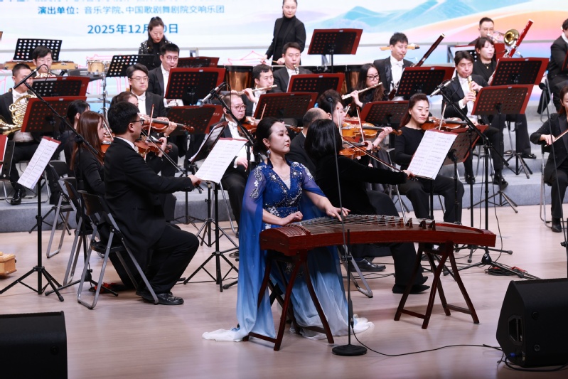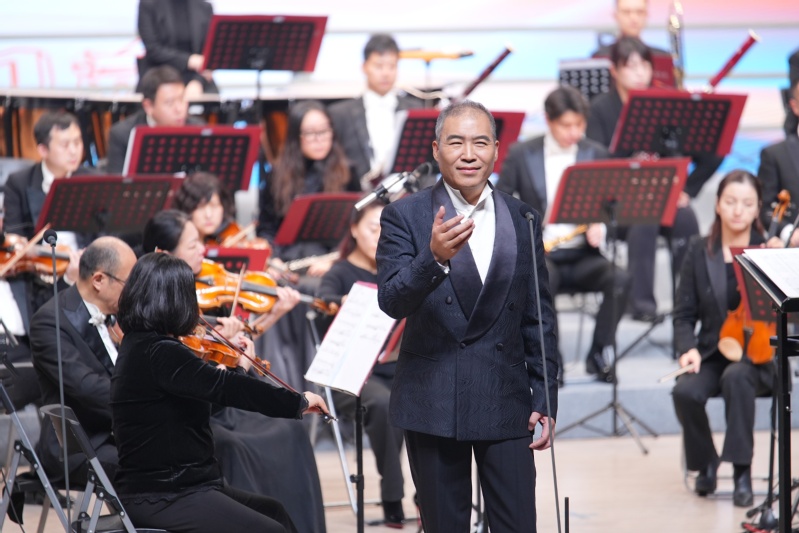 本次活动由广西师范大学主办,校美育中心、音乐学院、中华民族共同体研究院联合承办,特邀中国歌剧舞剧院交响乐团联袂演出。音乐会由我校客座教授、著名指挥家、中国音乐学院特聘教授许知俊执棒,特别邀请我校特聘教授、著名男高音歌唱家王铁刚倾情出演,学校音乐学院多位青年教师亦同台献艺,与中国歌剧舞剧院音乐家们默契协作。曲目编排精心,既有《春节序曲》、《一枝花》、《云裳诉》等扎根中华优秀传统文化、展现民族音乐魅力的经典之作;也有《帕米尔之音协奏曲》、《新疆之春》、《鸿雁主题随想曲》等描绘祖国辽阔疆域、反映多民族风情音乐的精彩篇章;更有《沁园春·雪》、《怀念战友》、《不忘初心》、《我爱你中国》等抒写爱国情怀、唱响时代主旋律的深情演绎,实现了中华美学与交响形式的深度融合。